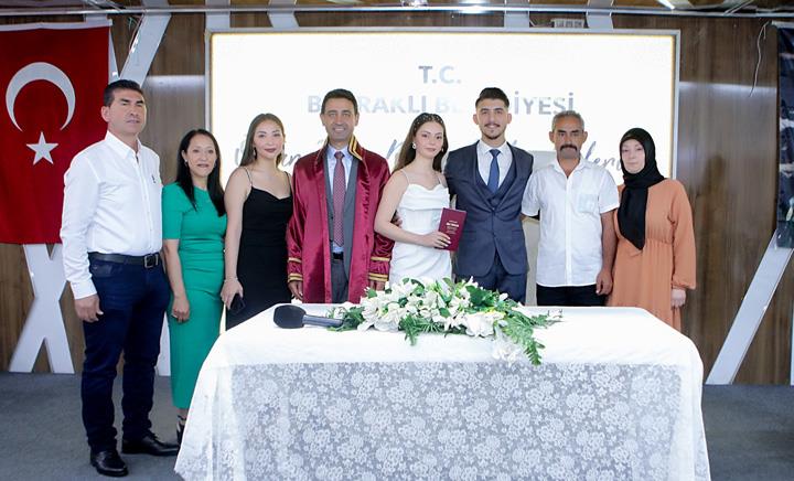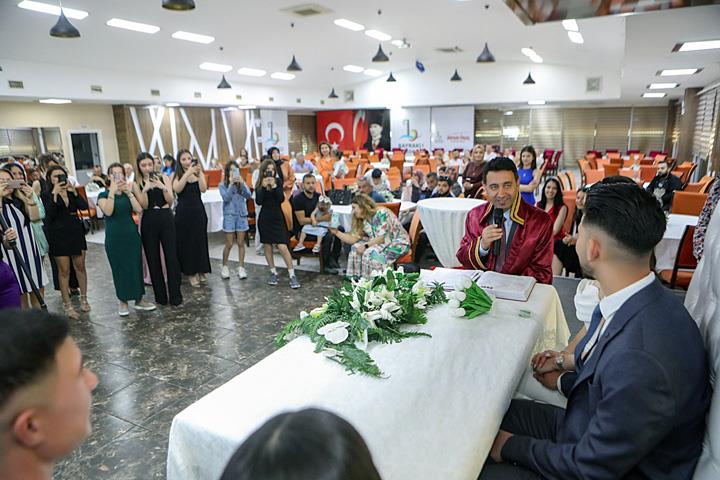 Başkan Önal, akşam saatlerinde ise Merve ve Ali Eralp çiftinin nikahlarını kıydı. Genç çifte mutluluklar dileyerek nikah cüzdanını geline teslim eden Önal, “Bugün göreve geldiğim günden bu yana ikinci nikah törenine katıldım. Genç çiftlerimizin mutluluklarına şahitlik yapmak beni son derece mutlu etti. Evliliğinizi karşılıklı sevgi ve saygı anlayışıyla yürütün, birbirinizi üzmeden, kırmadan ömür boyu mutlu olun. Bu vesileyle evlenen ve evlenecek tüm çiftlerimize şimdiden ömür boyu mutluluklar dilerim" dedi.