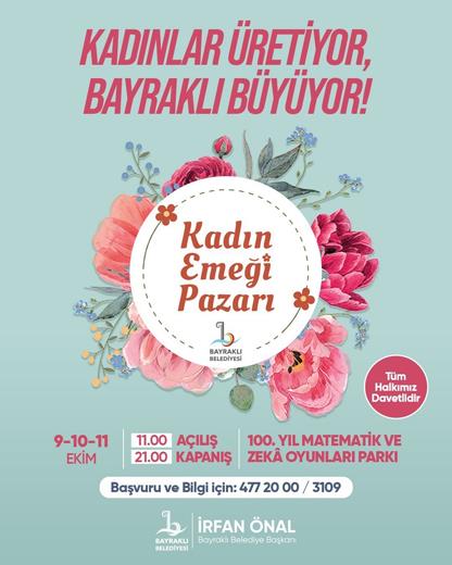 Bayraklı Belediyesi, ilçedeki üreten kadınları desteklemek amacıyla el emeğiyle hazırlanan takı, tasarım, ev aksesuarı ve yiyecek ürünlerinin yer aldığı Kadın Emeği Pazarını ziyaretçilerle buluşturuyor. 100. Yıl Matematik ve Zeka Oyunları Parkı’nda düzenlenecek etkinlikte, uygun fiyatlı birçok ürün üç gün boyunca sergilenecek ve 11 Ekim tarihine kadar ziyaret edilebilecek. Bayraklı Belediye Başkanı İrfan Önal, “Özveriyle üretilen birbirinden güzel ürünleri görmek ve Bayraklı’nın üreten kadınlarına destek olmak için tüm vatandaşlarımızı stantlarımıza davet ediyoruz” dedi.