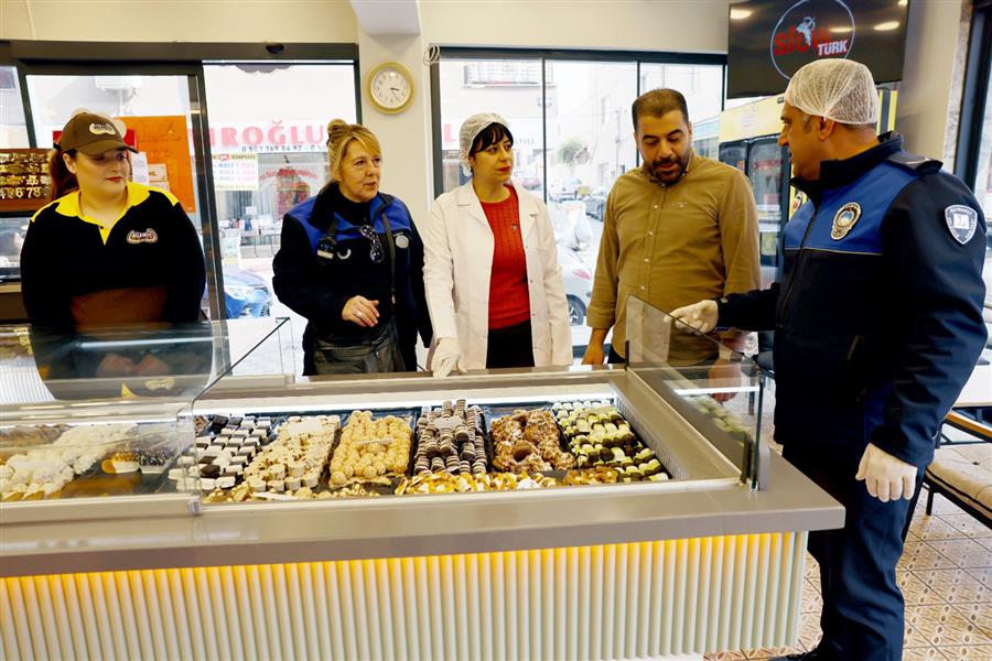 Bayraklı Belediyesi Zabıta Müdürlüğü ekipleri ilçe genelinde halk sağlığını koruma amacıyla yürütülen denetimleri, Ramazan Bayramı dolayısıyla yoğunlaştırdı. Tatlı üretimi ve gıda satışı yapan işletmeler, gıda yüksek mühendisi ve zabıta ekipleri tarafından titizlikle incelendi. Denetimlerde ürünlerin üretim koşulları, hijyen, depolama şartları, gramaj ve işletmelerin yasal belgeleri kontrol edildi. Mevzuata aykırı işlemlerde bulunan işletmelere uyarılarda bulunuldu. Ayrıca Ramazan ayı boyunca ilçe genelindeki camiler dezenfekte edilerek bayrama hazır hale getirildi.